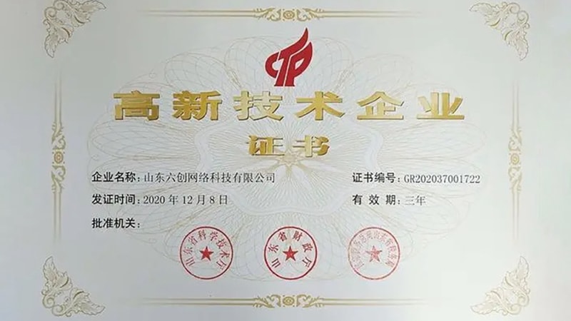 六創科(kē)技(jì)正式被評為(wèi)國(guó)家(jiā)高(gāo)新技(jì)術(shù)企業(yè)
